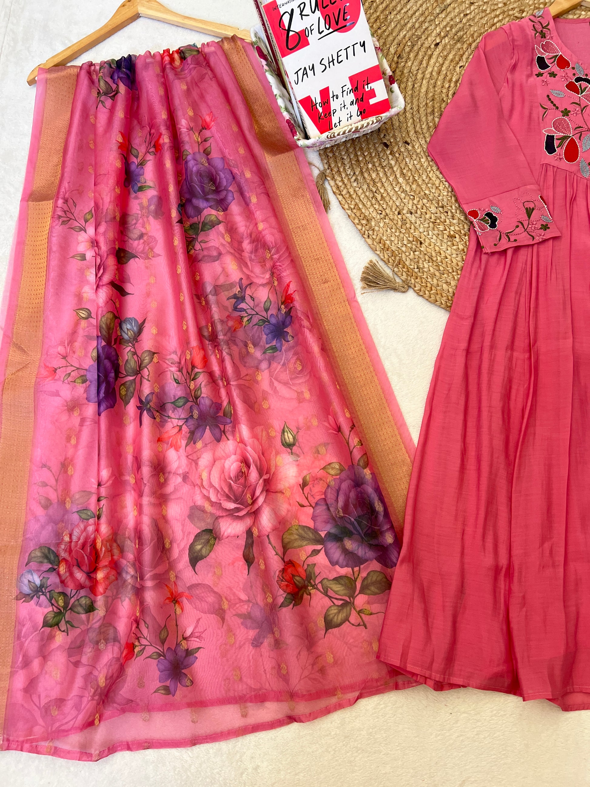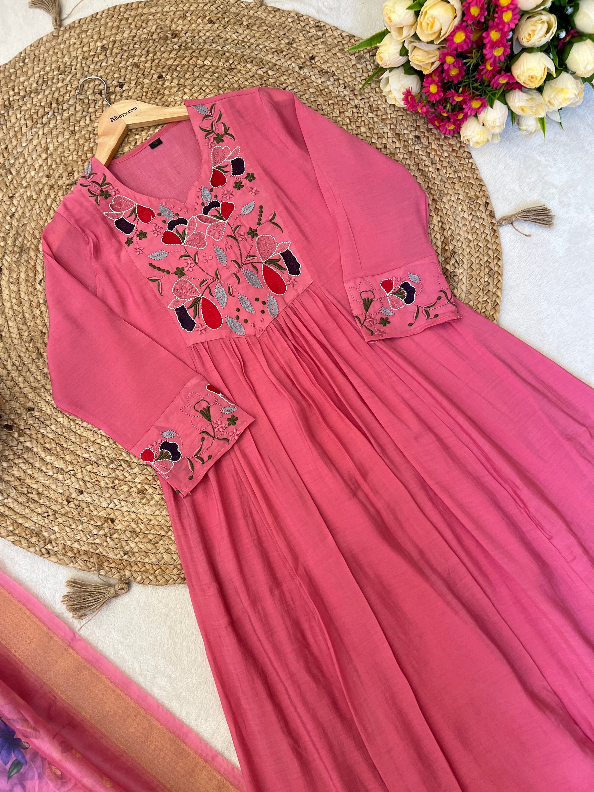 Muslin silk Anarkali with full embroidery Organza dupatta CBRP 1044